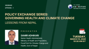 Episode 1- Lessons from Nepal will take a deep dive into how Nepal is embedding climate considerations within its health system architecture. The session will unpack policy mandates, legal and institutional frameworks, and how responsibilities are structured across national and sub-national levels.