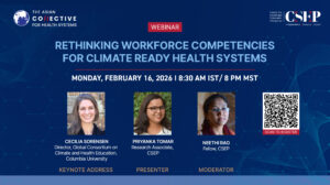 This webinar will present ongoing research that examines climate-health competencies for diverse health workforce categories, including clinicians, public health professionals, and community health workers, within Asian contexts. The discussion will explore existing global and regional competency frameworks, assess gaps in current training and policy approaches, and highlight emerging practices for integrating climate considerations into health workforce development.